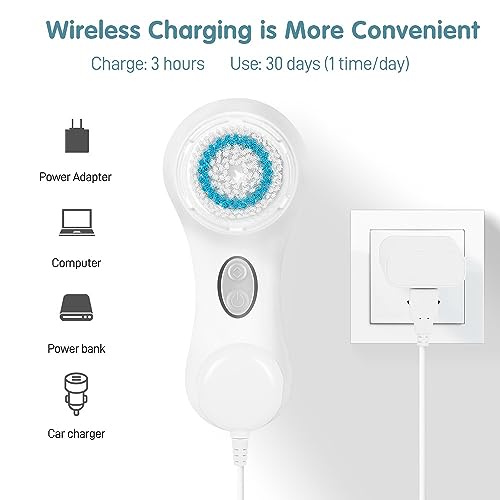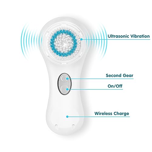 Sonic Facial Cleansing Brush System – Waterproof, Wireless Charging, Smart Face Cleansing Brush- Skin Cleaning, Exfoliating, Pore Minimizing – Suitable for All Skin Types, (Pure White)